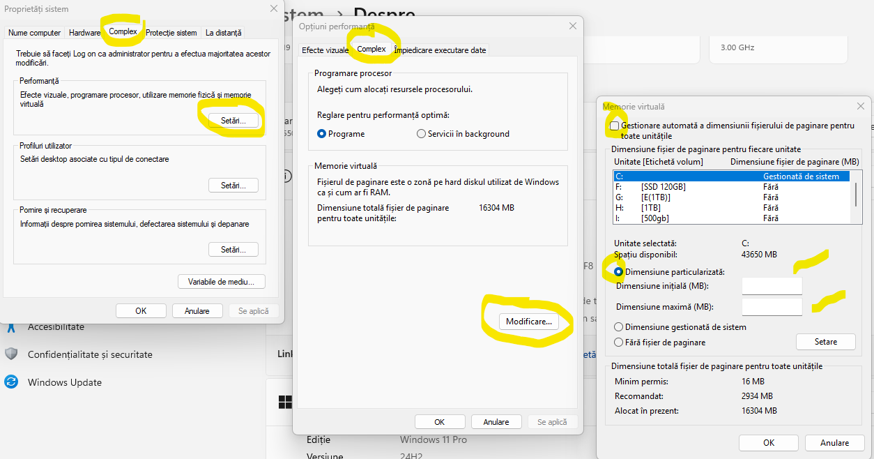 5. Mărirea memoriei virtuale (dimensiunea fișierului de pagină)