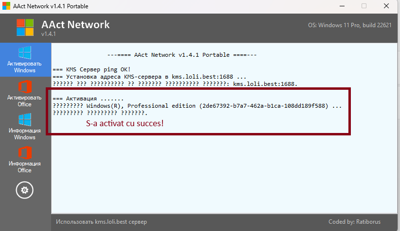 8. În final vă apărea așa rezultat că s-a activat cu succes