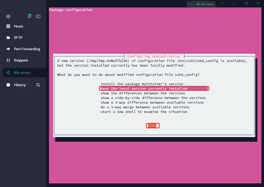 După ceva timp, va apărea o nouă întrebare despre sshd_config.