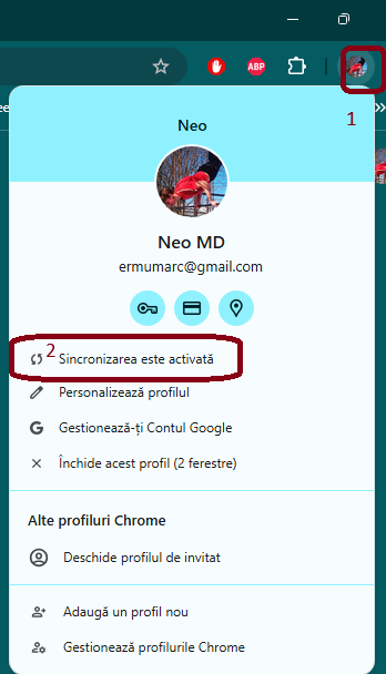 După ce vă conectați la profilul dvs. personal Google în Chrome pe alt computer, toate datele sincronizate vor fi disponibile. Veți putea să utilizați parolele salvate anterior, adresele site-urilor dvs. preferate și să vedeți filele deschise.