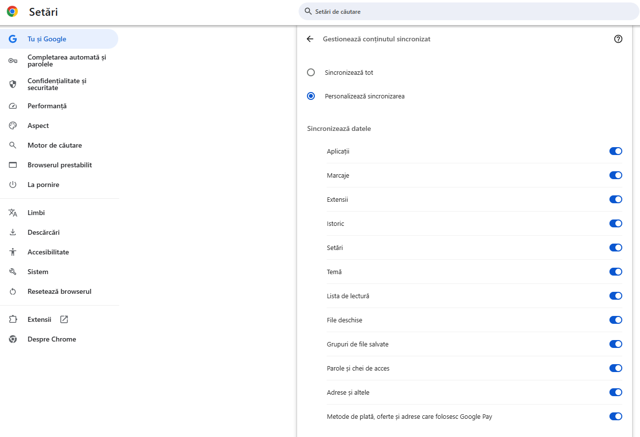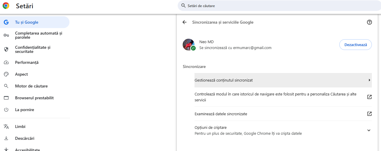 Activarea și configurarea sincronizării