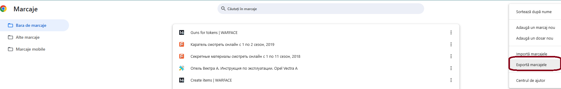 Pentru a exporta marcaje: