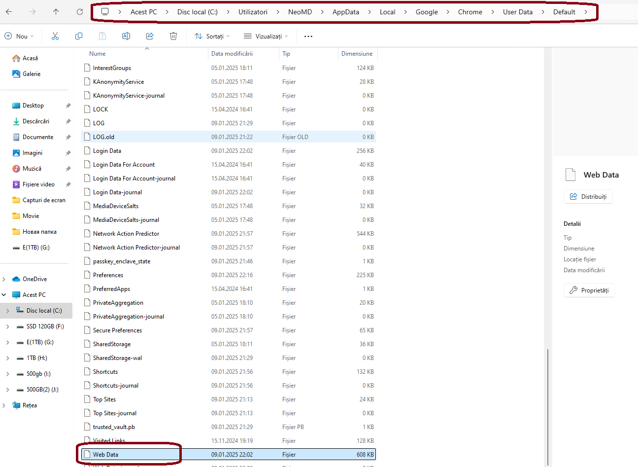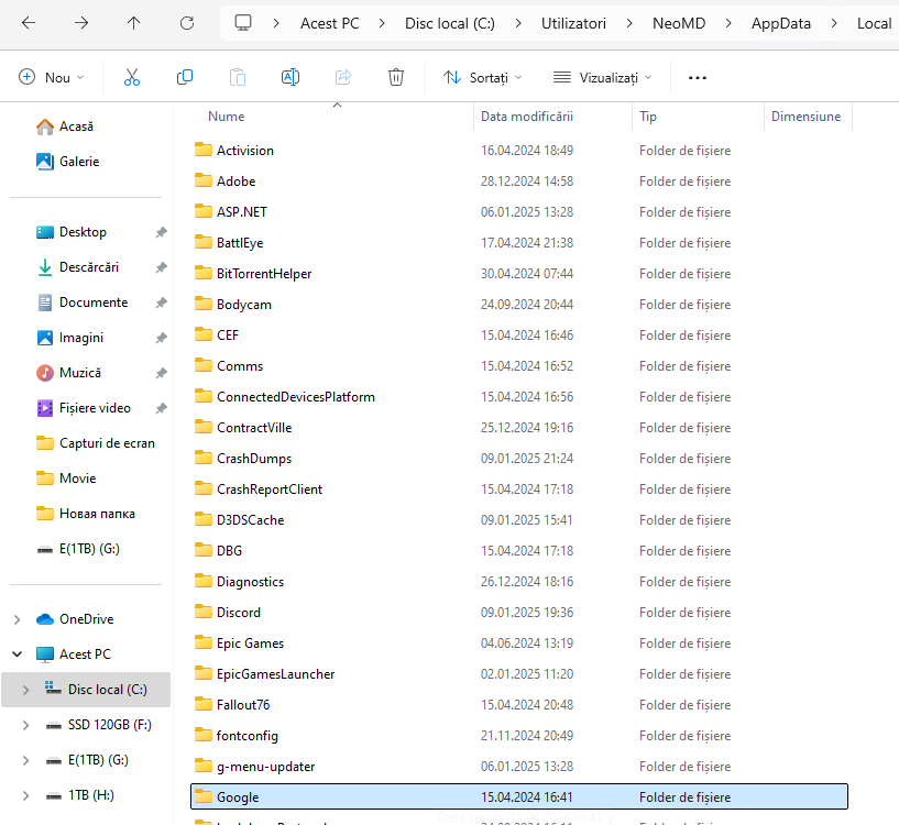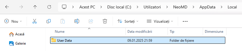 UserName \AppData\Local\Google\Chrome\User Data. În loc de