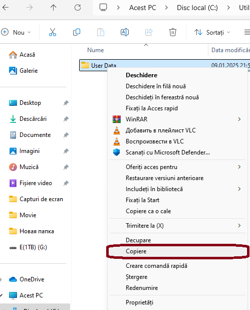 Încă o metodă: Copierea unui folder de profil