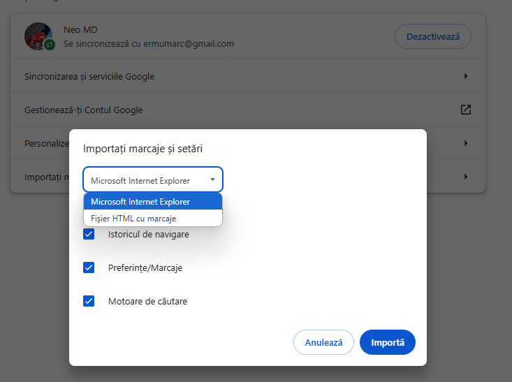 Transferarea datelor din alte browsere în Chrome
