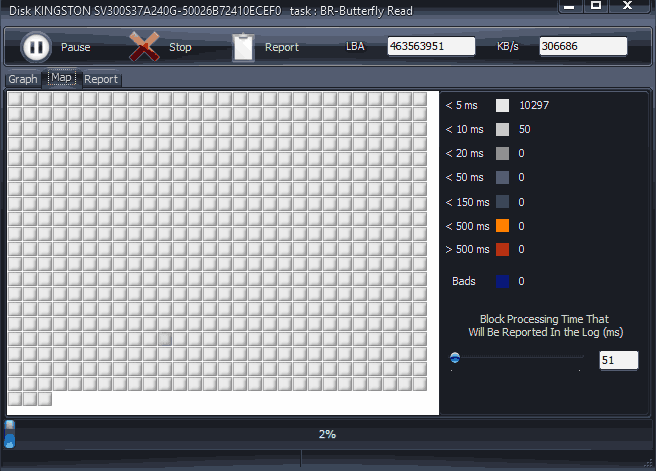 Aici, pe pagina de testare, puteți bifa caseta de selectare „Remapează”, astfel încât în timpul testului, sectoarele defecte să fie marcate ca nefuncționale.