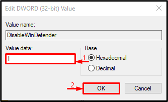 - Denumiți parametrul DisableAntiSpyware și setați valoarea la 1 .