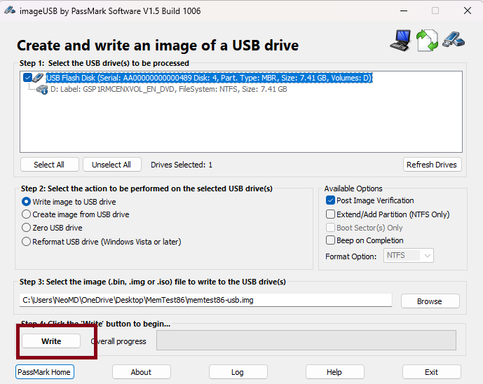 În primul rând, veți dori să descărcați MemTest86 de pe site-ul web PassMark, fie în formă USB, fie ISO (link de mai sus). Pentru acest ghid, am urmat traseul unității flash USB, deoarece computerul meu de testare nu avea o unitate CD/DVD la momentul scrierii acestui articol. Pentru ISO, utilizați software-ul preferat pentru scrierea imaginii. Folosesc