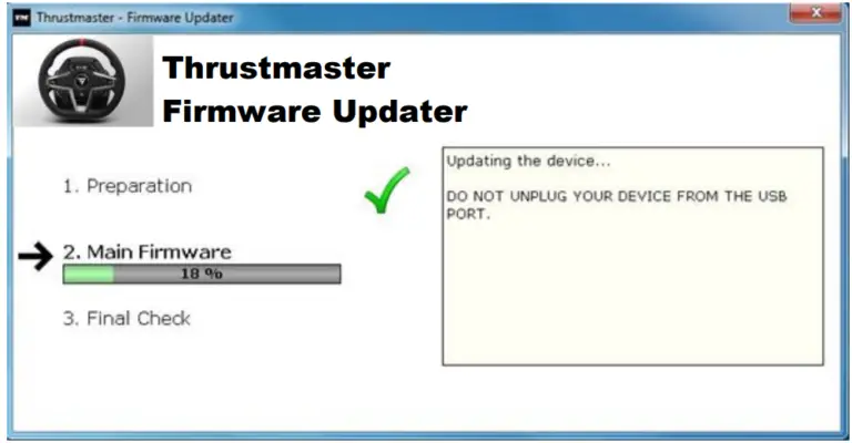 IMPORTANT: NU DECONECTAȚI volanul de la portul USB și NU DECONECTAȚI alimentarea de la volan în timpul procedurii de actualizare a firmware-ului!