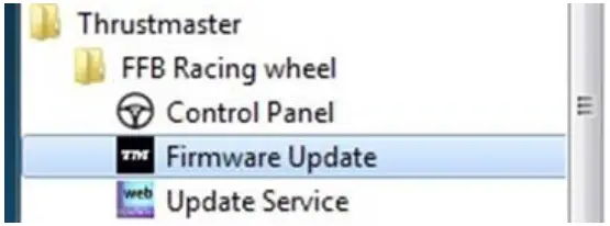 Start > Toate programele > Thrustmaster > FFB Racing Wheel, faceți clic pe Actualizare firmware.