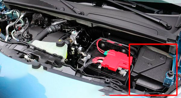 Cutia de siguranțe este amplasată în compartimentul motor (pe partea stângă), sub capac.