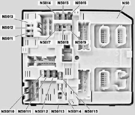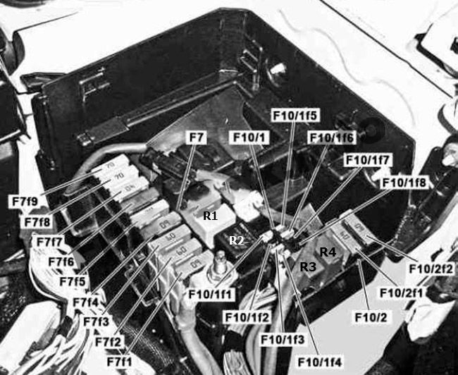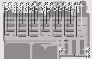 Alocarea siguranțelor și releului în cutia de siguranțe din compartimentul motorului