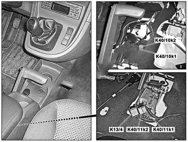 Releu de încălzire a scaunelor, releu lumini de frână ESP, releu de alimentare al producătorului caroseriei, panou de control al încălzirii/ventilației, afișaj, radio